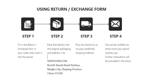 4. Send all items back to us with original package, you will be notified via email once your parcel arrive.